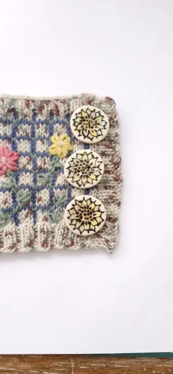 I love the late summer flowers of July and August and the warm colours of sunflowers. I wanted to make some handpainted floral buttons to celebrate the season. These sunflower buttons are individually handprinted. I layer up the colour of the petals prior to adding the raised black slip, which I pipe on. The raised slip leaves a wonderful raised design adding to the texture of the buttons.