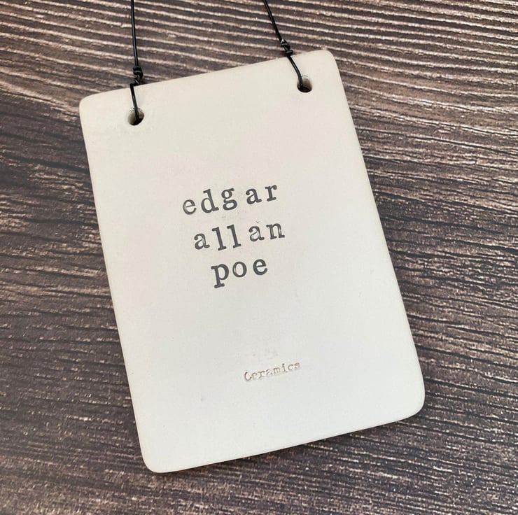This ceramic sign has been made using white earthenware clay. I cut the shape by hand and added two holes for wire. The letters were individually stamped to read the quote "It is a happiness to wonder; it is a happiness to dream" by Edgar Allan Poe and then left to dry between two boards for over a week to help it stay flat. Once dry it was bisque fired, the black was then added to the lettering and a wax resist was applied over the letters (you may have seen this on instagram) I then glazed in a gorgeous speckled white and fired again to over 1000 degrees celsius. Once out of the glaze firing the decals were cut by hand and applied before the sign was put back in the kiln for a third firing. Wire was added so it can be hung on the wall.
