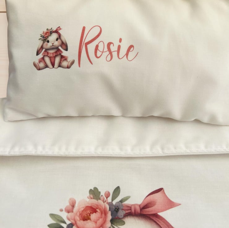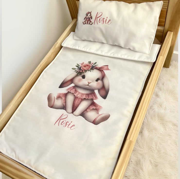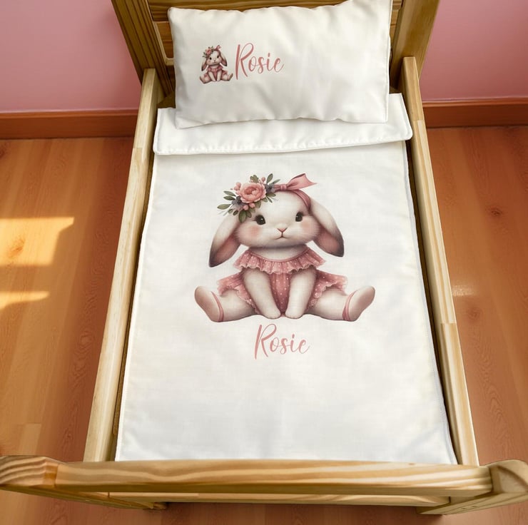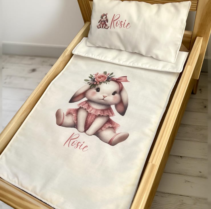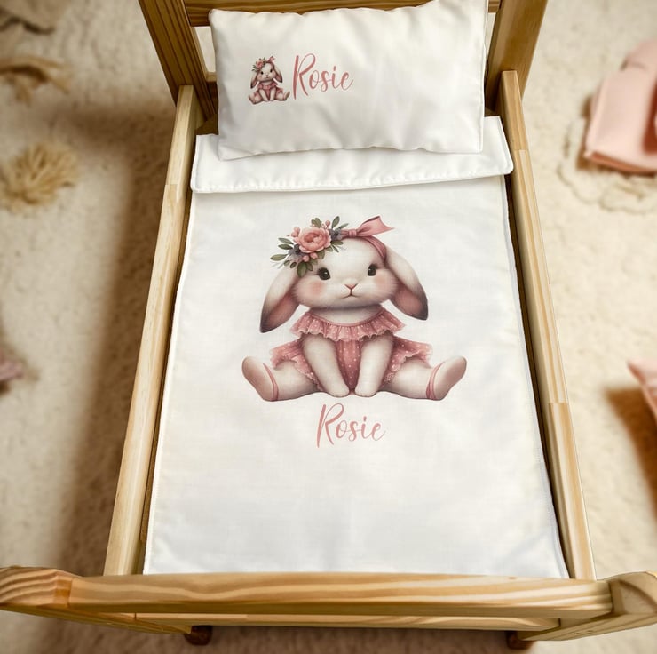This personalised pram/cot set is ideal for any little one to snuggle up their dolly or teddy for the night ready to sleep.