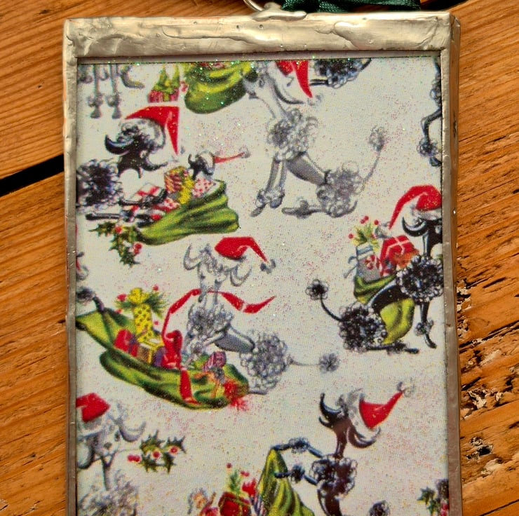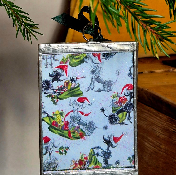 The outer edge of the decoration has been soldered using a lead free solder and a metal ring is added in this process for hanging.