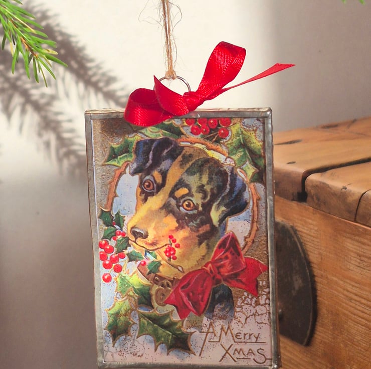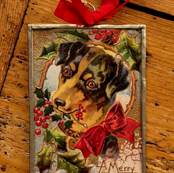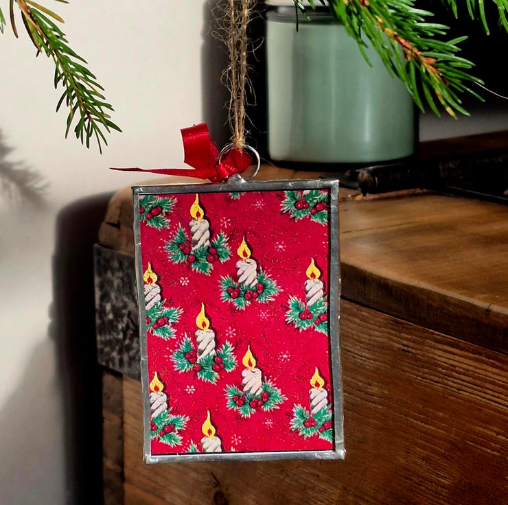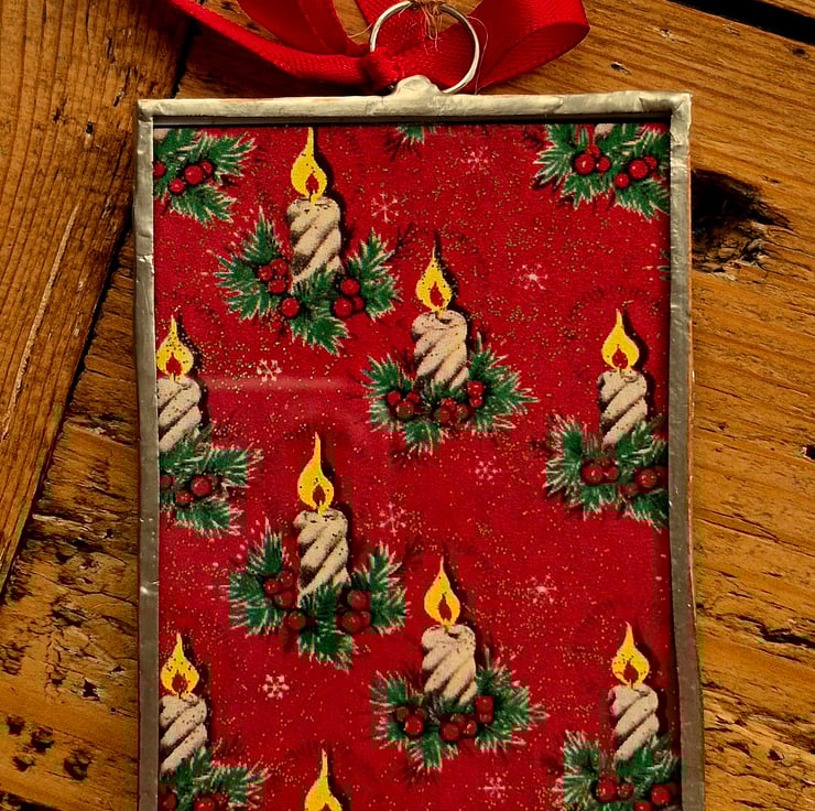 The outer edge of the decoration has been soldered using a lead free solder, and a metal ring is added in this process for hanging.