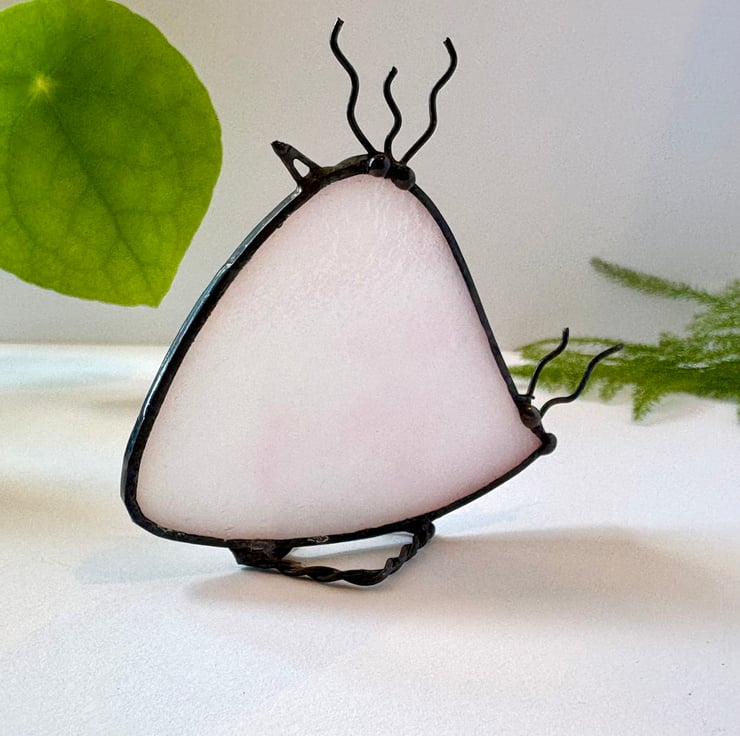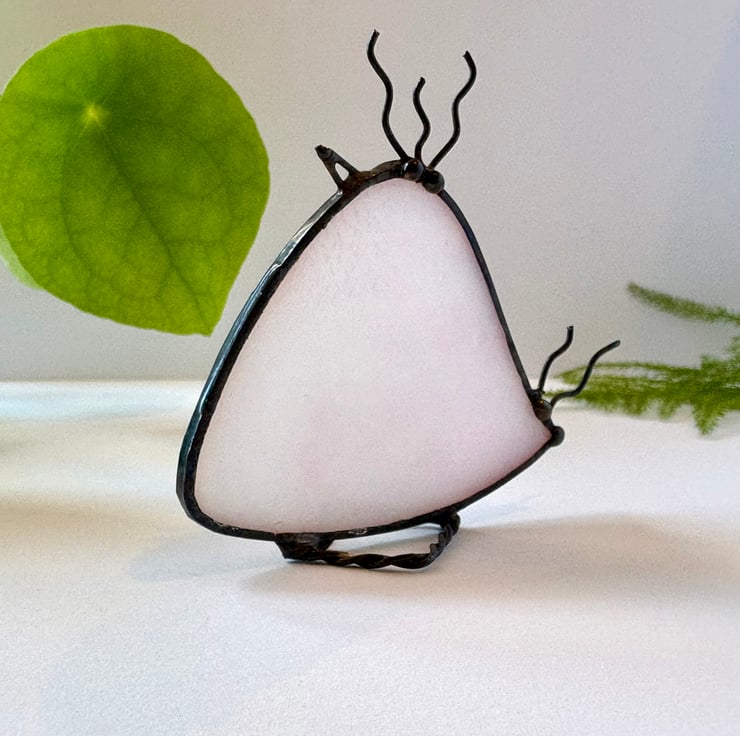 This bird has been made from a stained glass in a shade of baby pink colour. This piece of work, like majority of my pieces has been made using Tiffany (copper foil) technique.