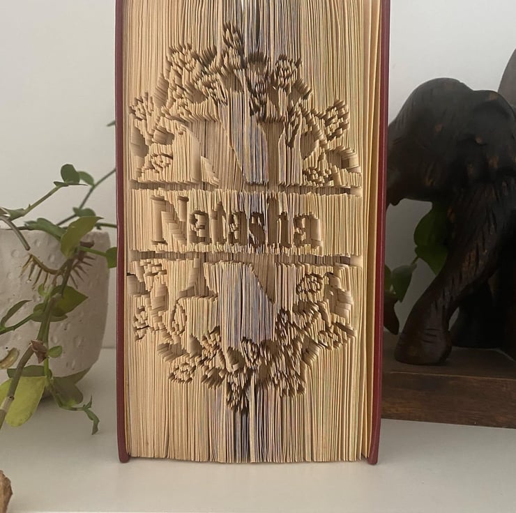 Just drop me a message with the name or word you would like to have running through the middle and I will loving craft this book for you. If you would prefer a particular colour or a certain book please do ask and I will do my best to help.