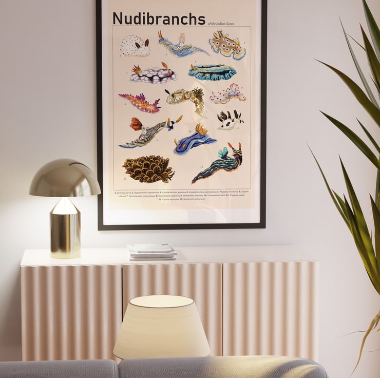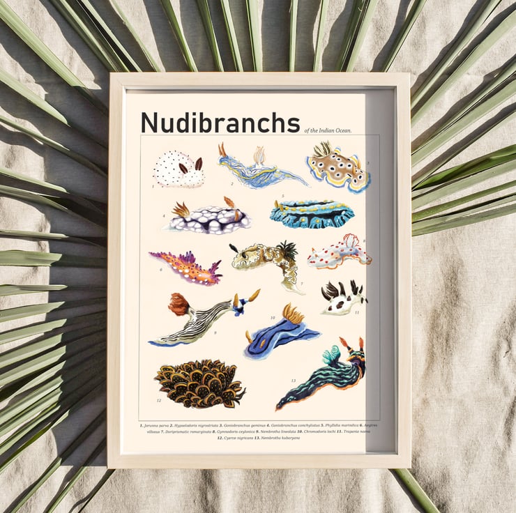 Discover the beauty of the ocean’s most vibrant creatures with this Nudibranch scientific illustration art print. Meticulously hand-illustrated, this piece captures the intricate details and bold colors of the nudibranch, also known as a sea slug. Perfect for marine biology lovers, scuba divers, and ocean enthusiasts, this wall art brings a splash of underwater wonder into your home.
