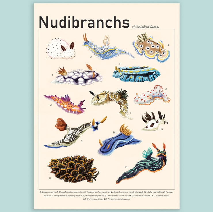 Nudibranch Art Print – Scientific Illustration of Colorful Sea Slug - Marine Biology Wall Art & Ocean Decor