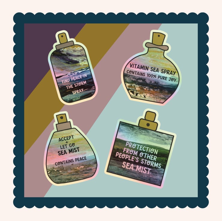 'Peace' Holographic Die Cut Sticker printed from my original acrylic seascape art. Perfect gift for sea lovers!
