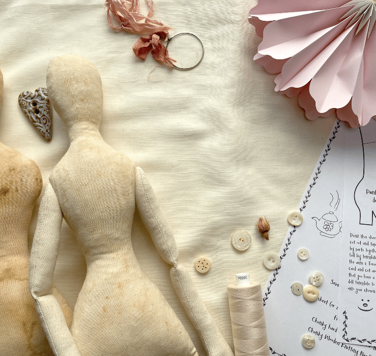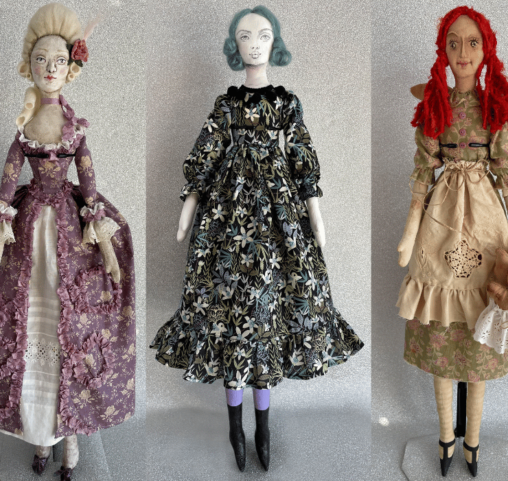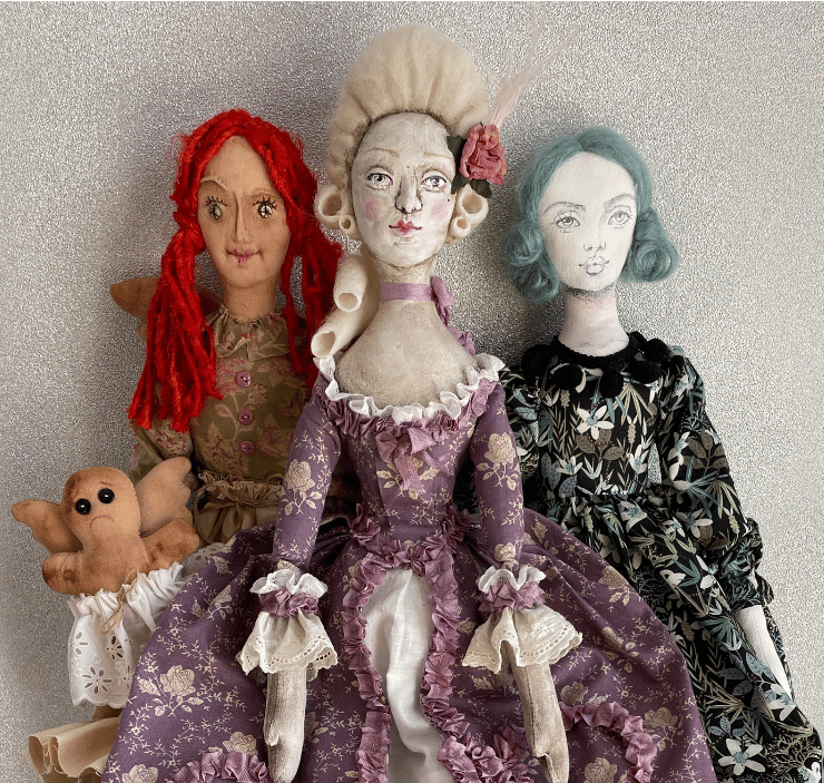 Simple cloth doll pattern with button jointed arms - makes an ideal art doll basis for beginner/intermediary doll makers. Embellish to your hearts content, making each new version of Molly totally unique. I show 3 examples of how you can finish this basic doll - but they are just meant to inspire you. I have included a pattern to create the Rococo doll's skirt but it is not a comprehensive tutorial on each doll shown. I've even included a cute little doll for Molly to hold. My pattern is suitable for everyone from beginner upward but please remember that any doll you make with this pattern will suitable for adult collectors, but not for children/play because of the button joints and other embellishments that you may add. Have fun!