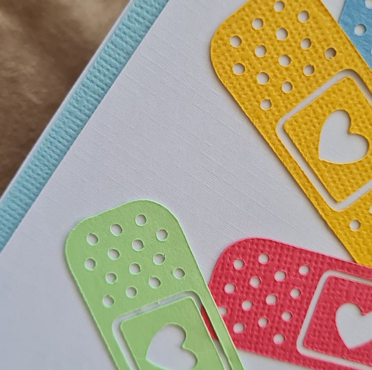 Send a little love and laughter with this cheerful Get Well Soon card, featuring a rainbow of band-aids and a whole lot of heart. Whether it’s sniffles, surgery, or just a rough patch, this card wraps your well wishes in whimsy and warmth.