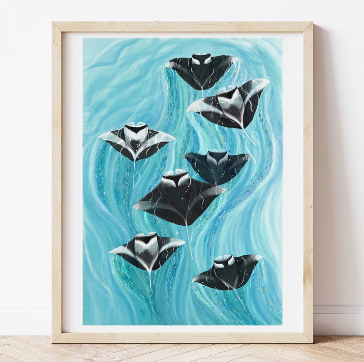 Printed on premium archival paper using fine art giclée techniques, the illustration showcases delicate linework and detail designed to last for years. Whether displayed in a beach house, ocean-inspired nursery, marine-themed office, or as part of a gallery wall, this manta ray print makes a stunning addition to your home decor or a thoughtful gift for sea life lovers.