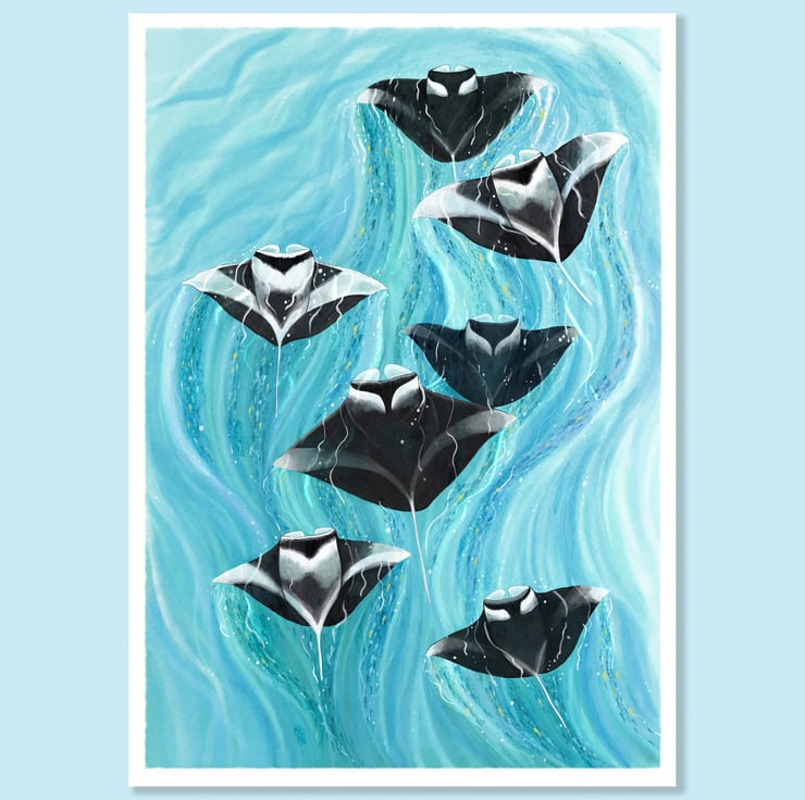 Manta Ray Art Print – Hand-Illustrated Ocean Wall Art - Marine Life Decor for Coastal Homes & Ocean Lovers