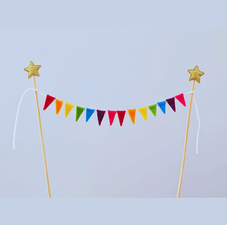 Add the perfect finishing touch to any celebration cake with this bright and cheerful rainbow mini bunting!