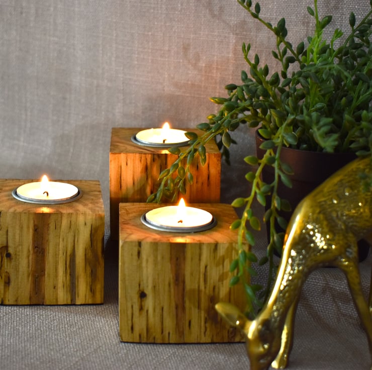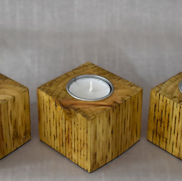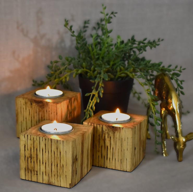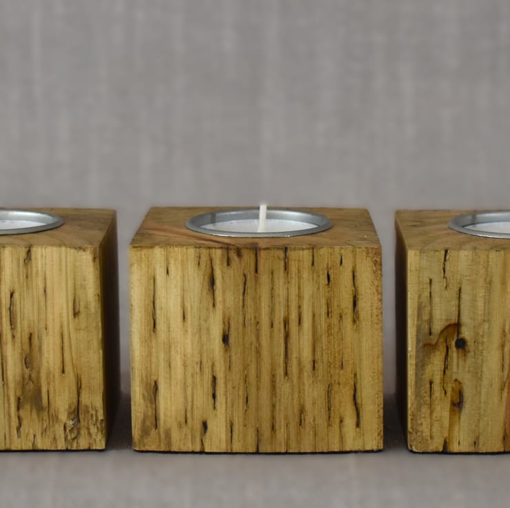 Set of 3 Tealight Holders Made from Upcycled Fence Post, Christmas table decor