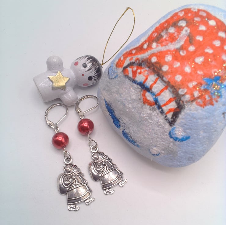 Silver Santa Charm with a Red Glass Pearl Bead Earrings, Secret Santa Gift, Earrings for Pierced Ears, Jewellery, Accessories, Gift, Birthday, Christmas, Secret Santa Gift, Stocking Filler