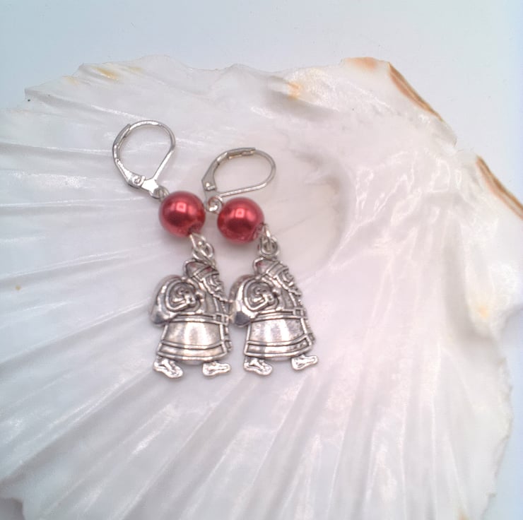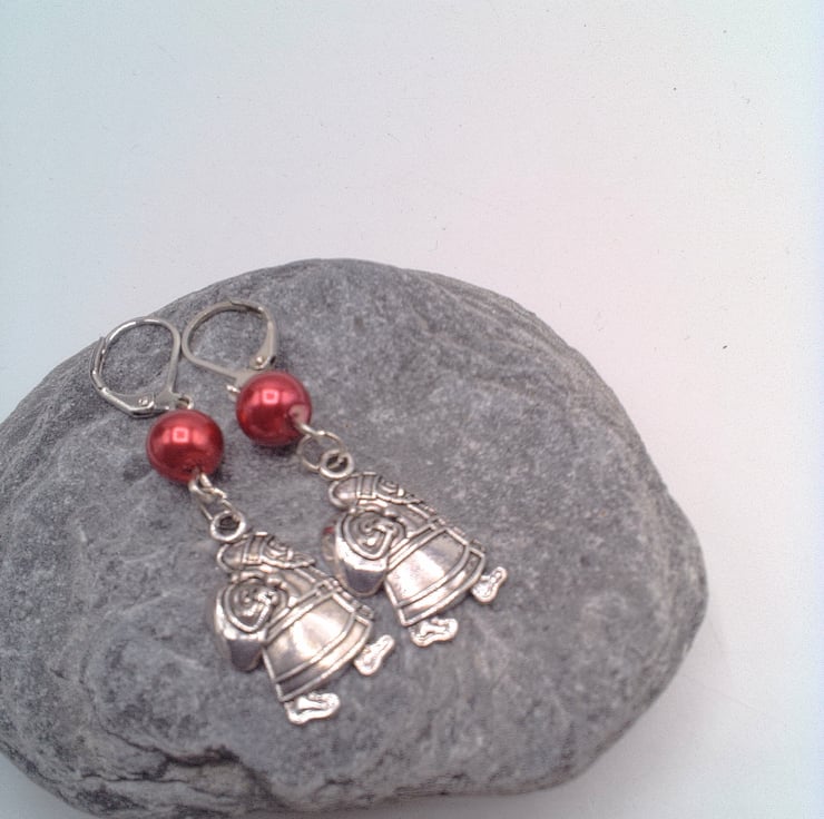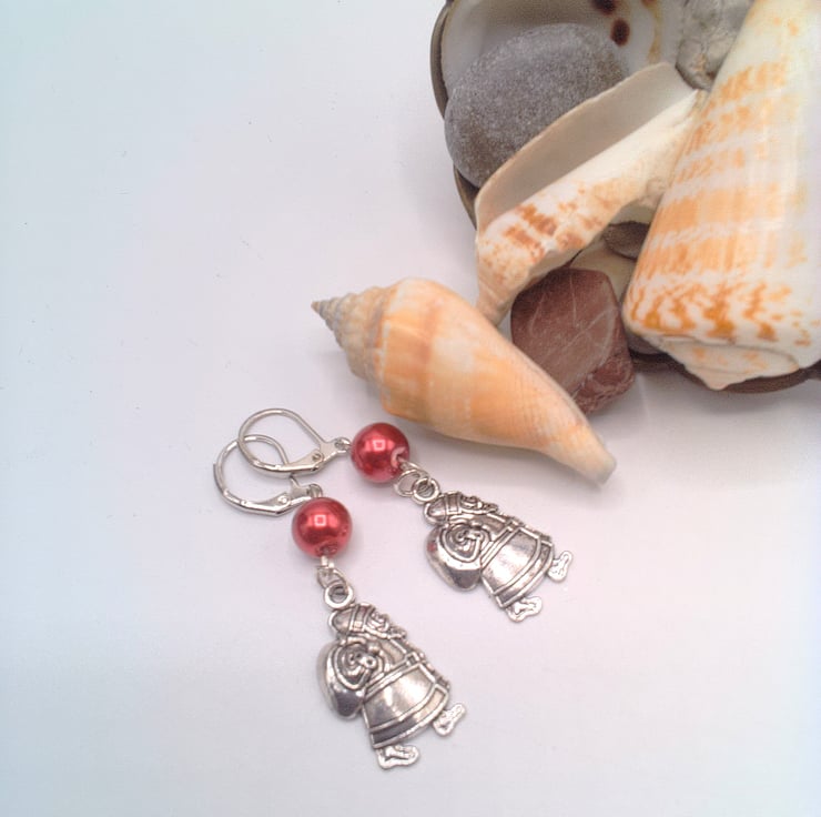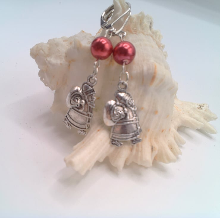 A cute pair of earrings for Christmas which will go well with any outfit you wear at Christmas time during the day or for a casual evening out. They would make a lovely gift for a friend or relative, for a birthday, or Christmas, a great Secret Santa Gift or stocking filler or a treat for yourself. The earrings are made using a red glass pearl bead and a silver Santa charm on silver plated lever backs. They have a drop of 4 cm (1.5 inches) from the base of the ear lever back. The earrings will be dispatched wrapped in tissue paper in an organza bag and delivered to you via Royal Mail 1st class post.