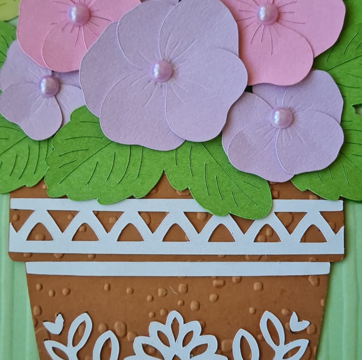 Send a little garden joy with this beautifully layered flower pot card—where pastel petals meet heartfelt intention. Handcrafted with dimensional paper blooms and a touch of whimsy, it’s more than just a greeting—it’s a gift in itself.