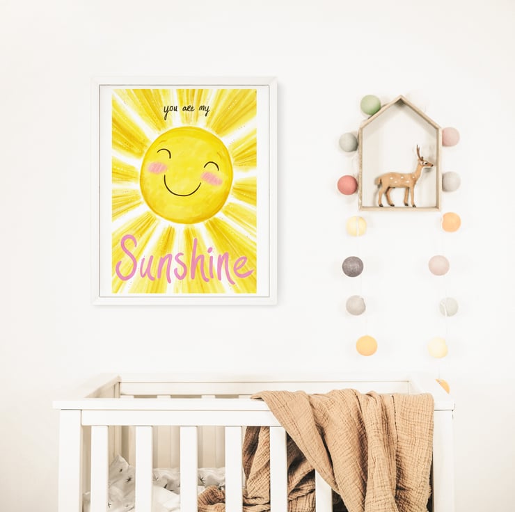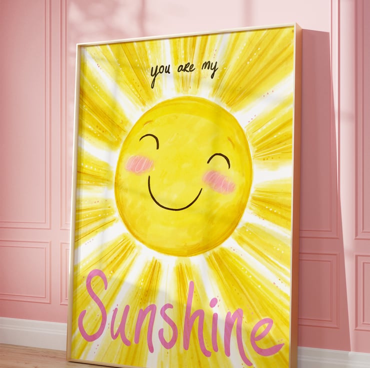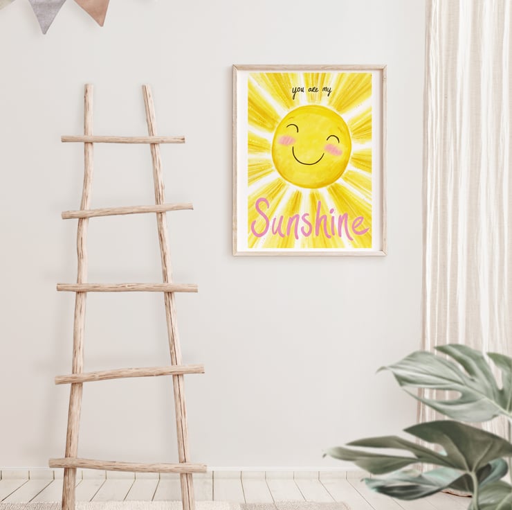 A print that brings sunshine and happiness into everyone's lives. It makes the perfect addition for a nursery, a gift for a newborn, a way to add a splash of happy colour in a bedroom!