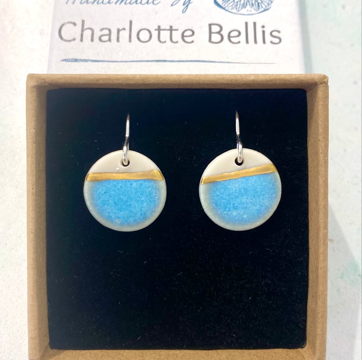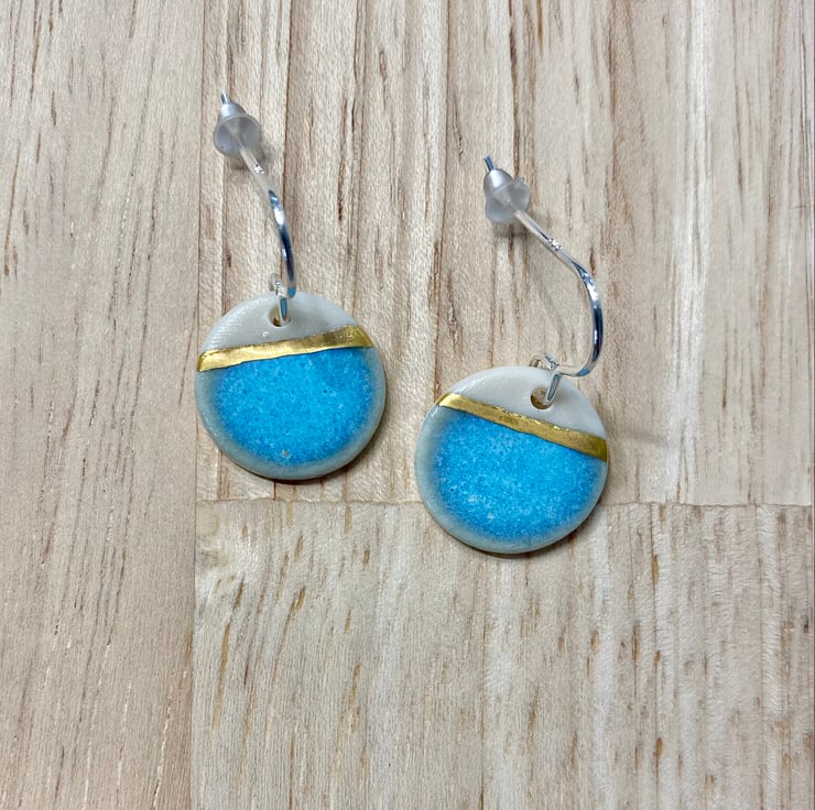 Sea Breeze disc earrings with 24ct gold lustre on silver earring hooks with rubber backings.
