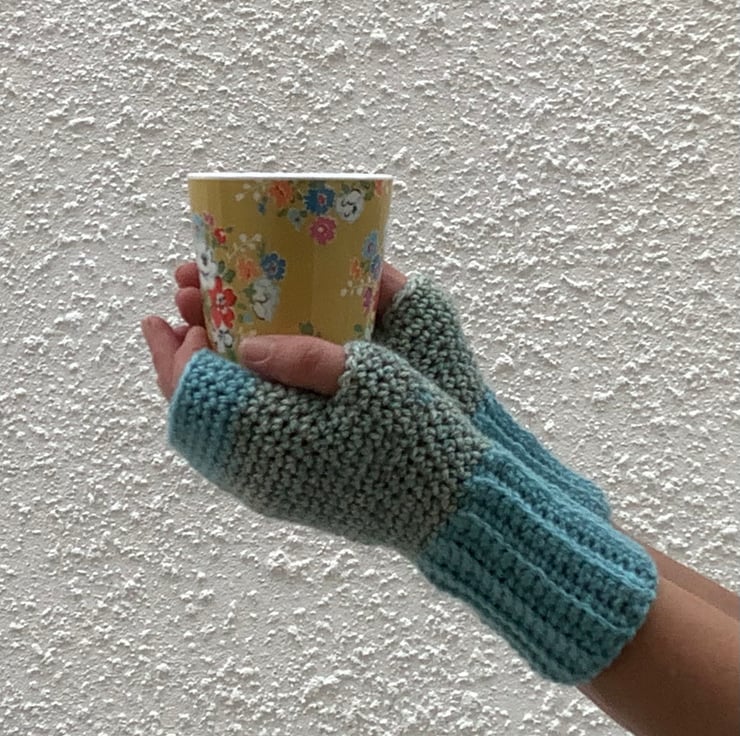I have designed and crocheted these fingerless mitts / texting mitts ' Rambler' using lovely soft ,wool blend yarns . I've created a relaxed but stretchy wrist section for comfort . They are pretty , practical , warm and cosy.