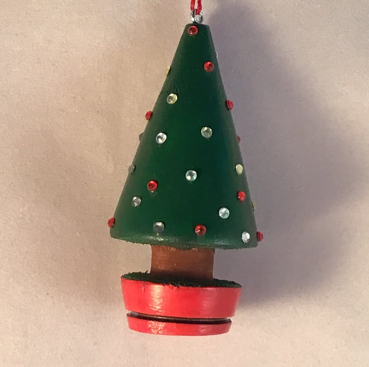 Red barrel, green grass, brown tree trunk all turned from a piece of reclaimed wood.