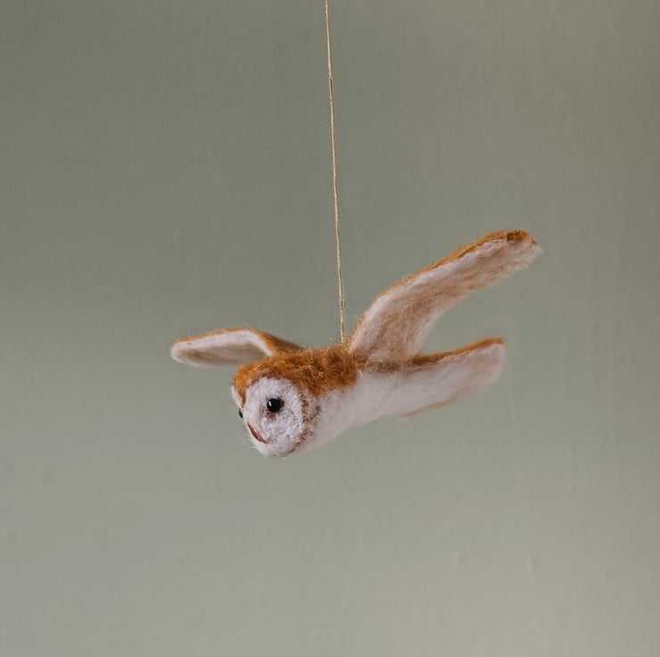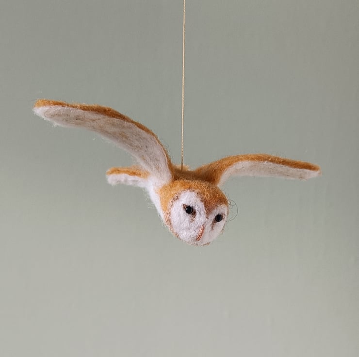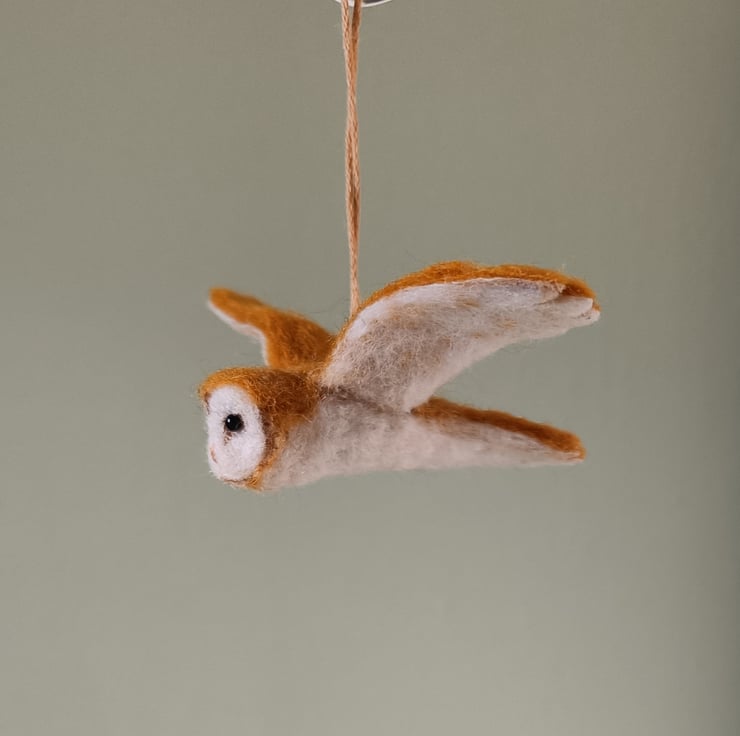 The tawny and barn owl decorations have been carefully felted using a blend of coloured felting wool. Each is finished with black glass eyes that add a lifelike sparkle, and their beak has been carefully sewn with embroidery thread.