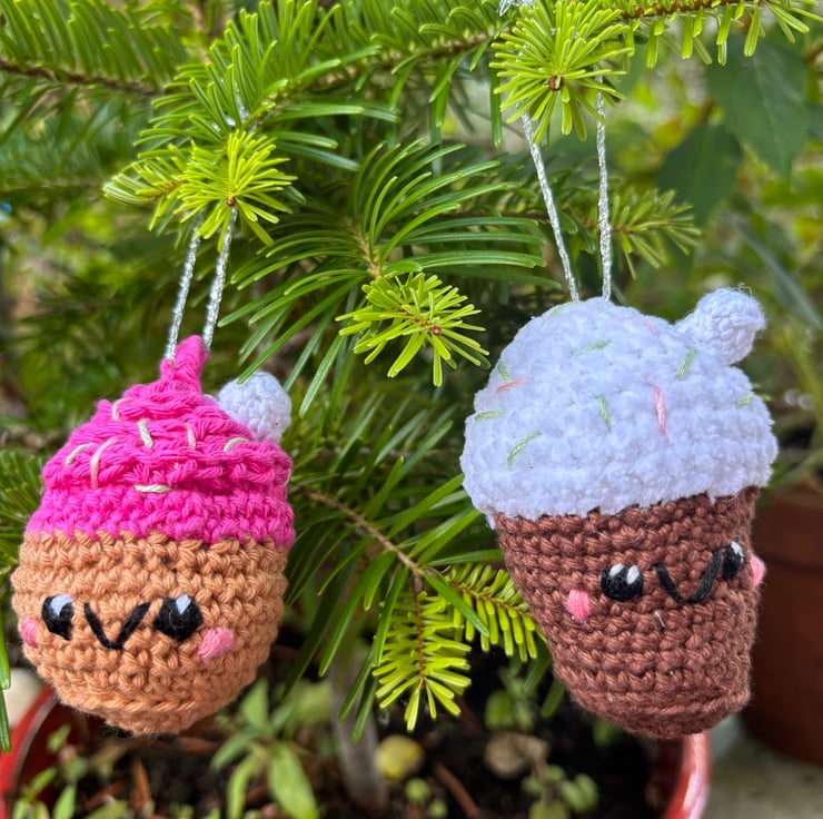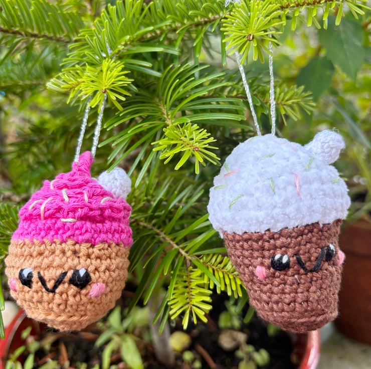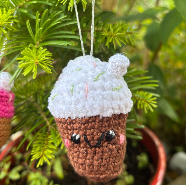 This sweet duo will add a touch of cuteness to your Christmas tree! This lovely hot chocolate with their topping of fluffy cream is accompanied by his friend cupcake who has piles of icing and of course a marshmallow