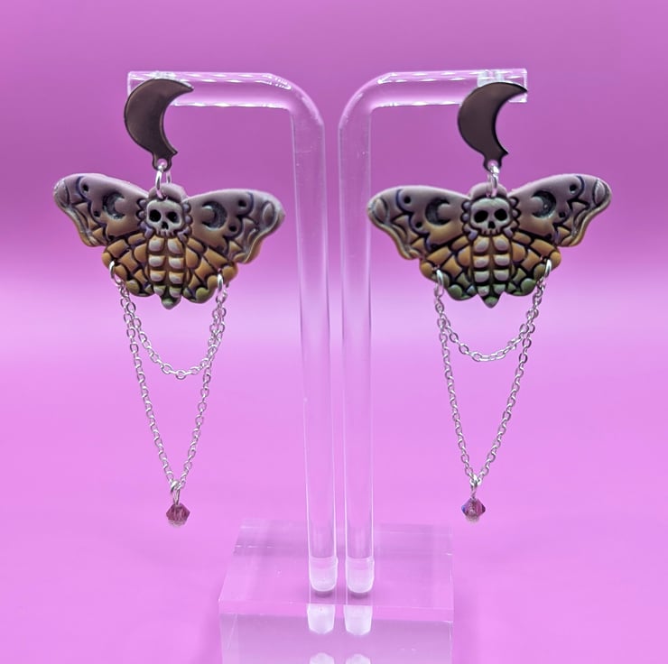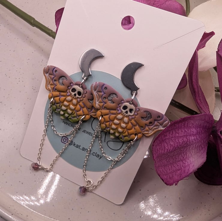I sculpted them from polymer clay, mixed the colors myself, and painted every little detail by hand. The chains and beads give them a magical bit of movement, and I promise they’re even more enchanting in person.