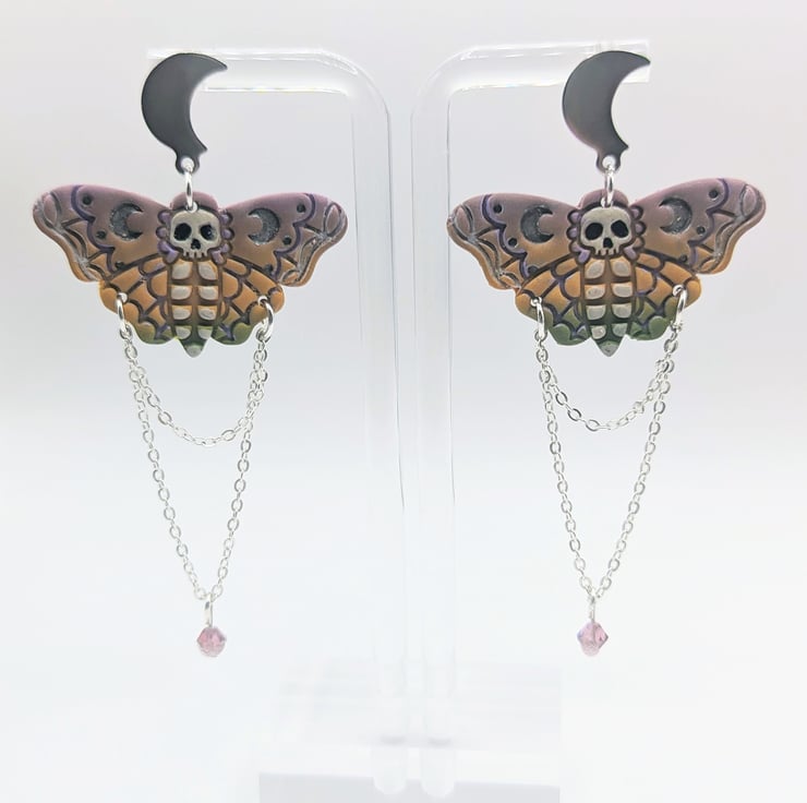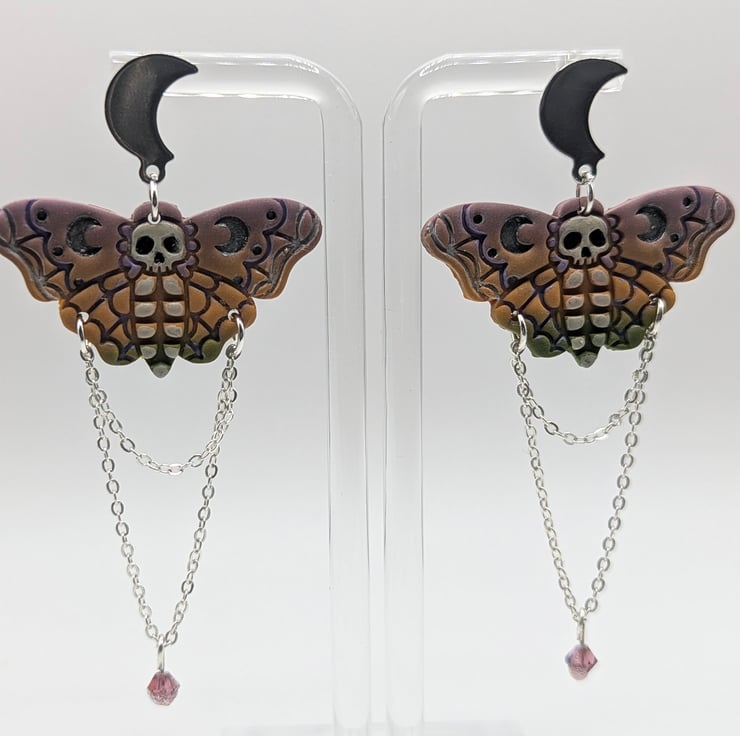 These moth + moon earrings are one of a kind and completely handmade by me.