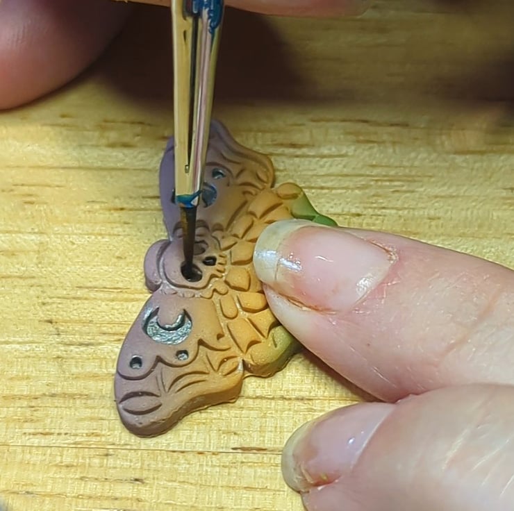These earrings are truly one of a kind, crafted with hand painted details. Each piece is made by hand from polymer clay, with three custom-mixed clay colors blended together to create the warm, earthy tones of the wings. The details are carefully hand painted, bringing out the intricate features of the design.
