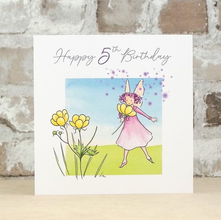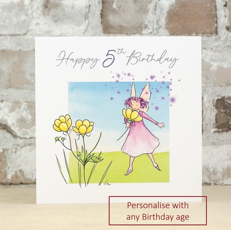 This new Fairy Buttercup Birthday card can be printed with ANY AGE from 1 to 110 as seen in photograph above, just put age required in options when you order.