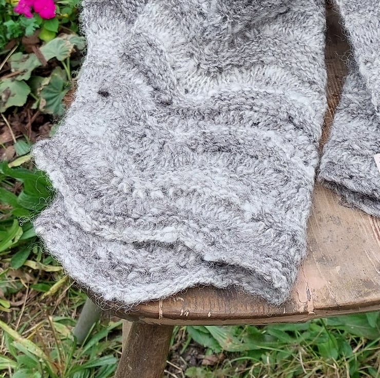 Handspun, Hand-knitted Luxury Stole in Pure Jacobs Wool