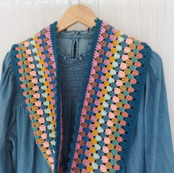 Each of my crocheted scarves is made with lots of different colours for the granny stripes and with a pretty picot trim to the top in the same colour as the bottom band.