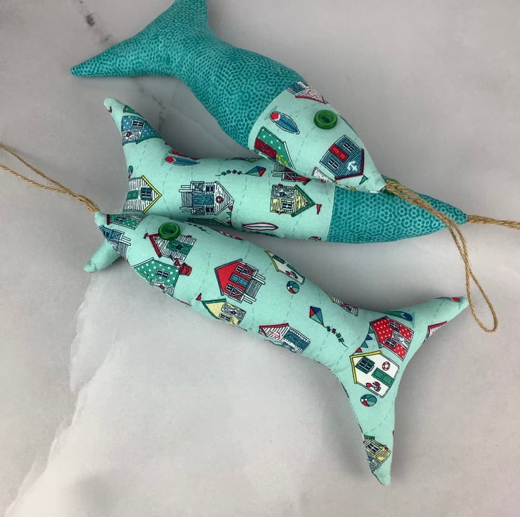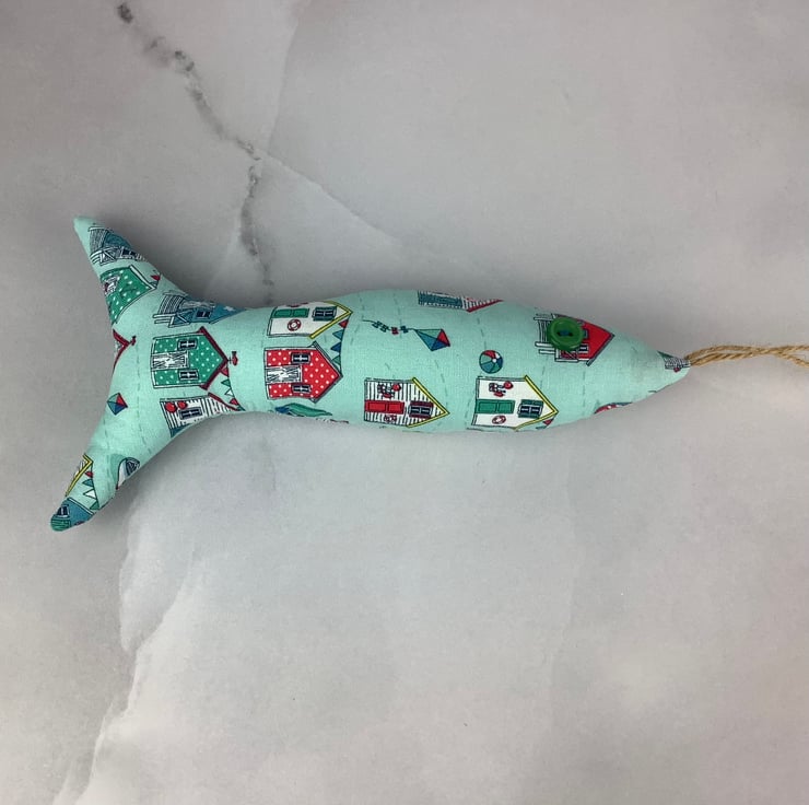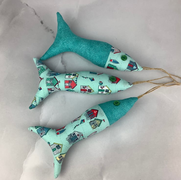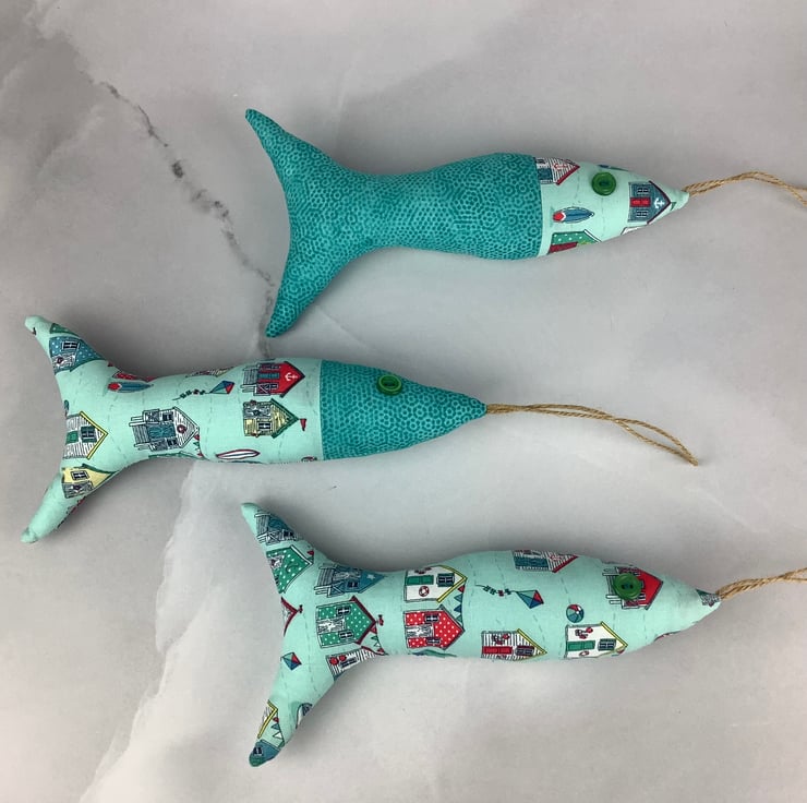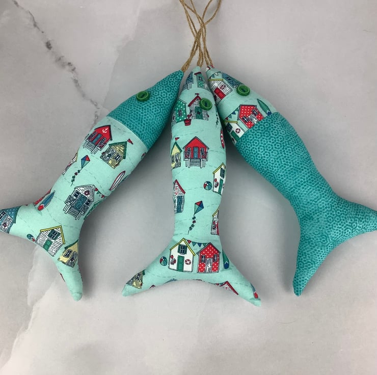 Beach huts hanging fabric fish set, Handmade