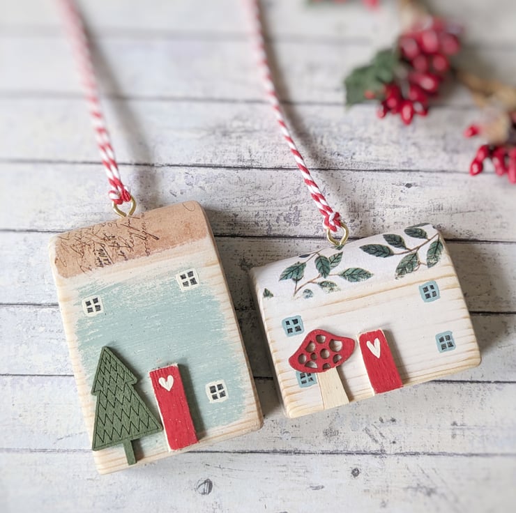 I have chosen two houses that compliment each other for this little set. Hang them together or give one as a gift!