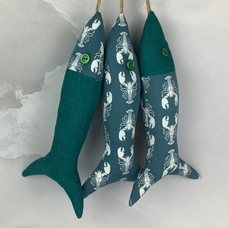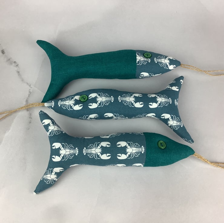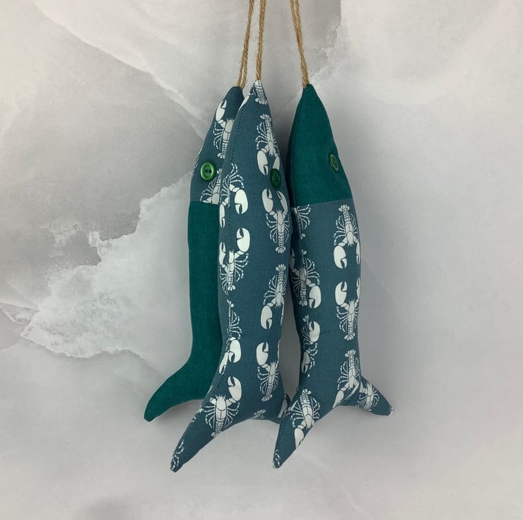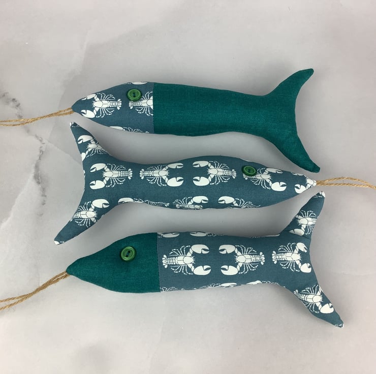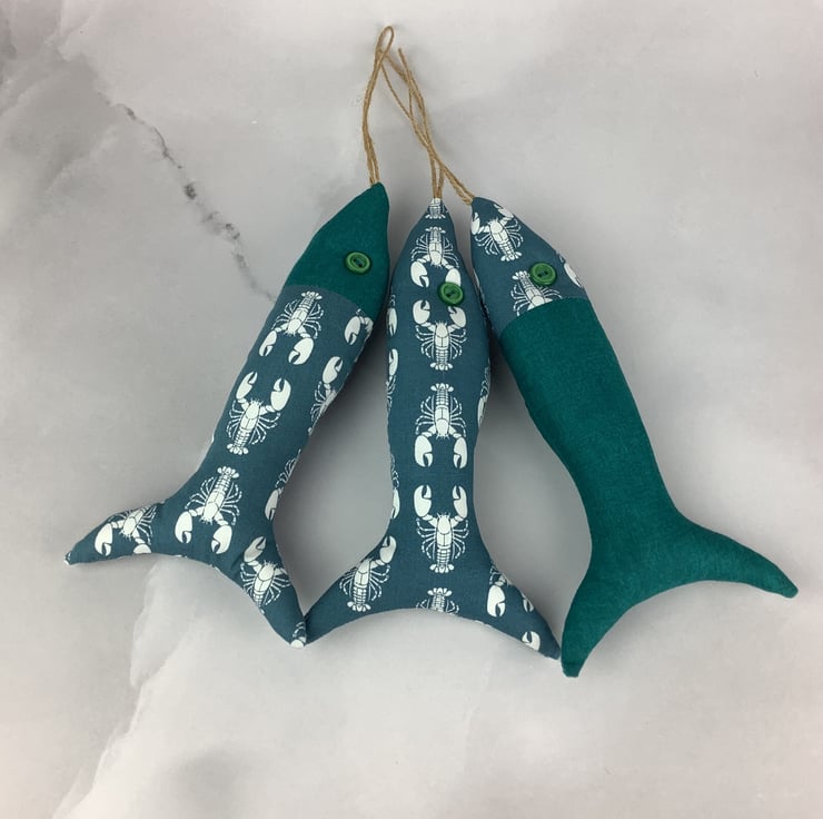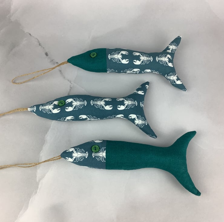 This listing is for 1 set of 3 fishes and each of my fishies are unique, designed and made by me in my relaxing and tranquil little West Sussex garden studio.