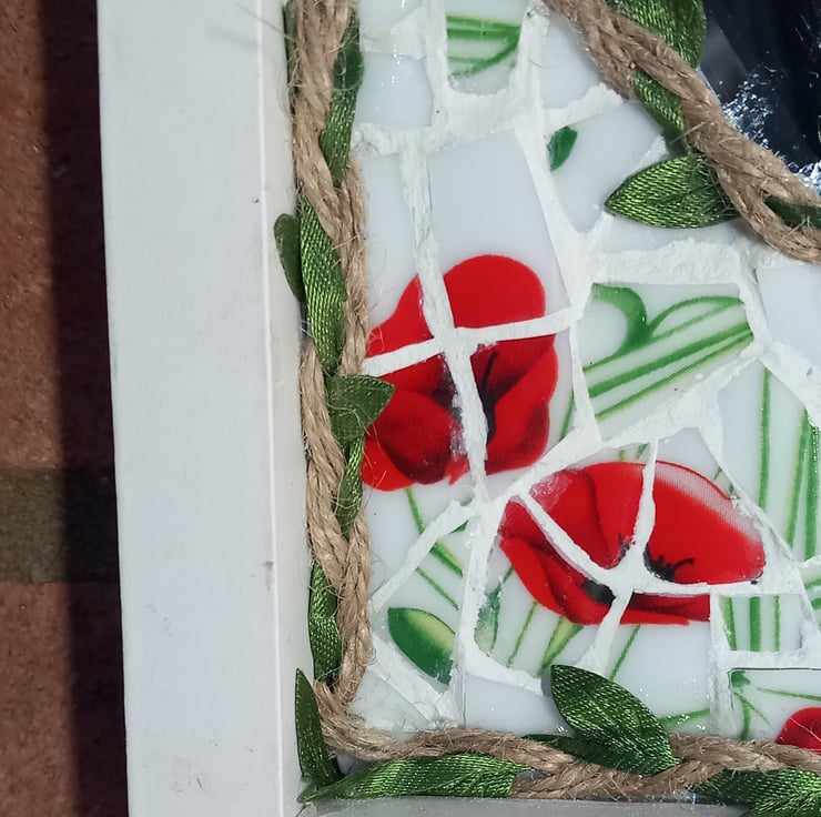 The poppy fragments were unused during the creation of another poppy mosaic.