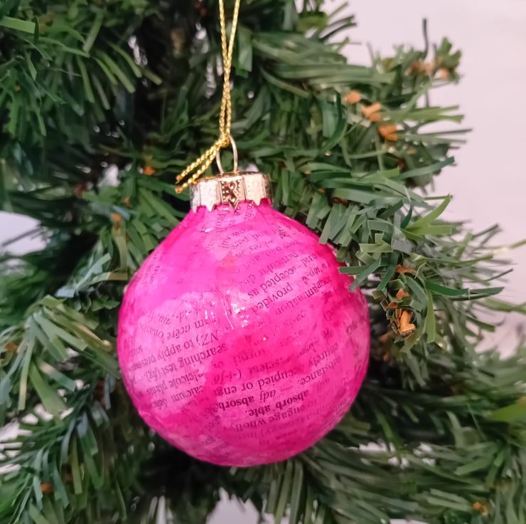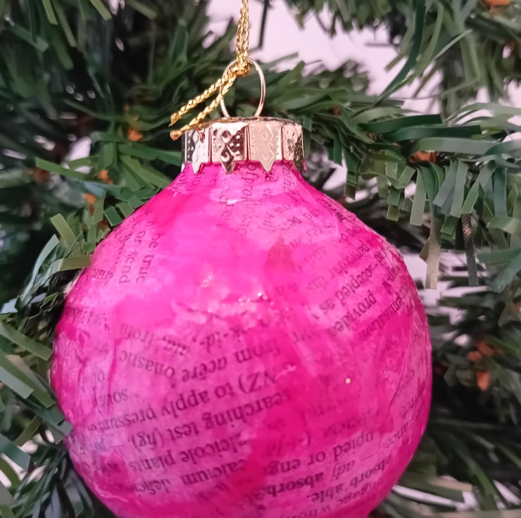 Upcycled Tissue Paper Christmas Bauble - Pink