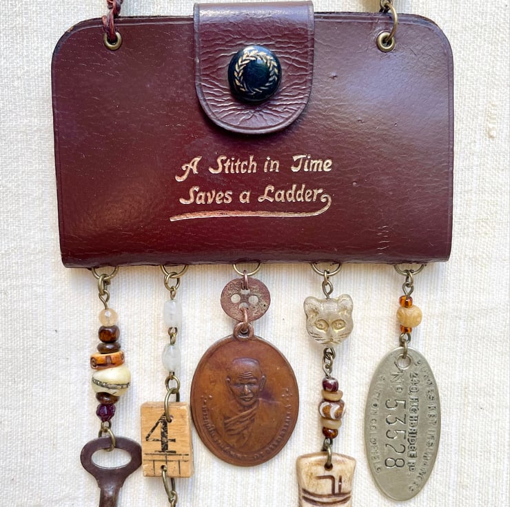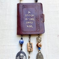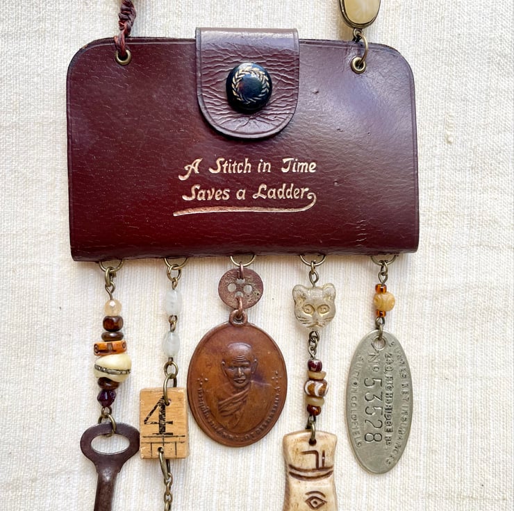 I enjoyed very much making this assemblage necklace. Luckily, these vintage leather needle cases pop up every now and again on the internet.