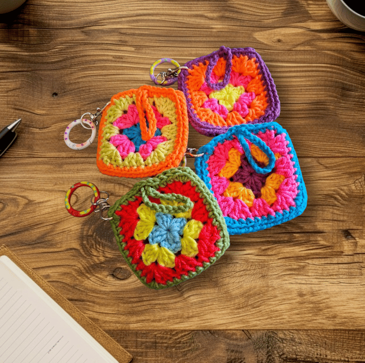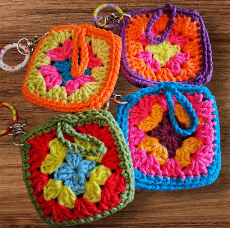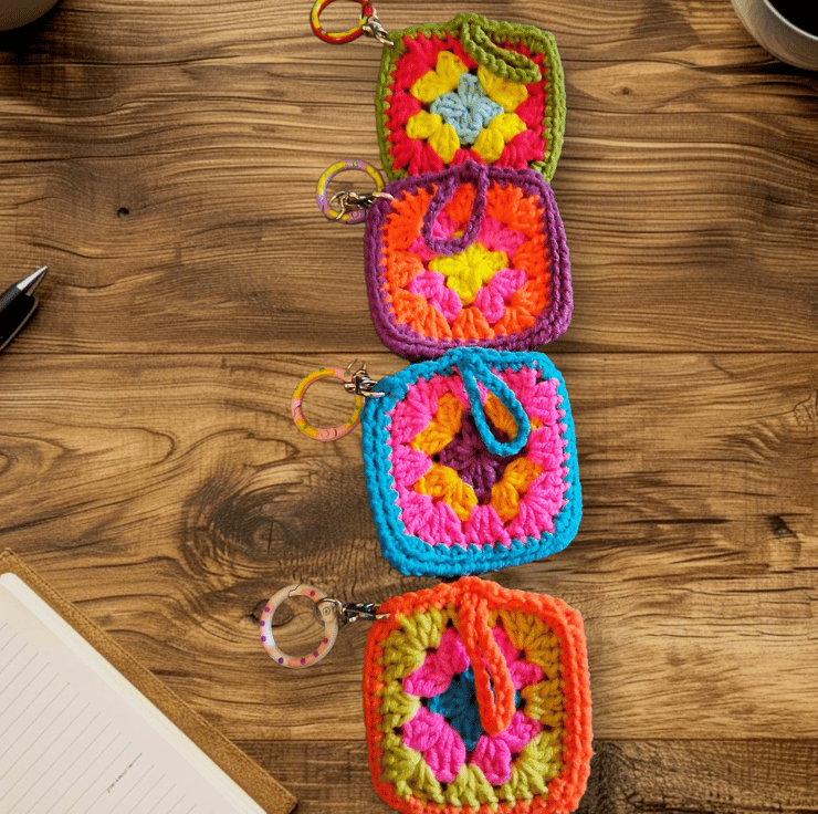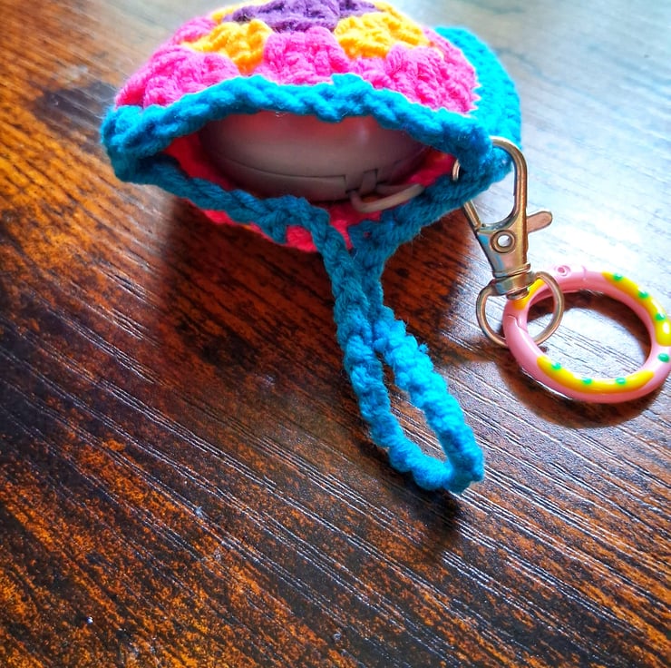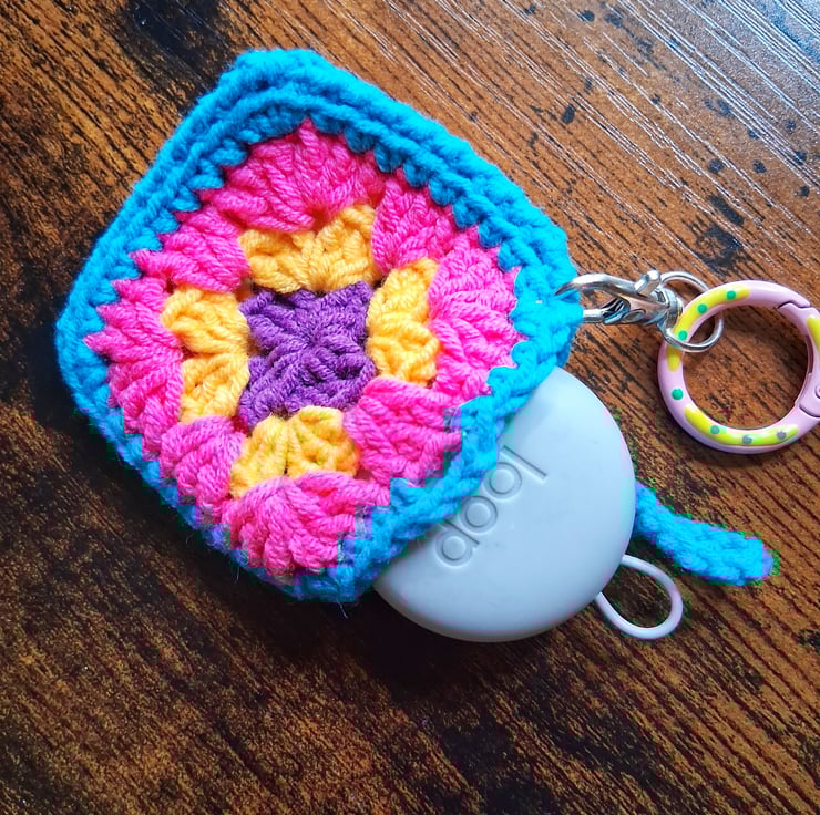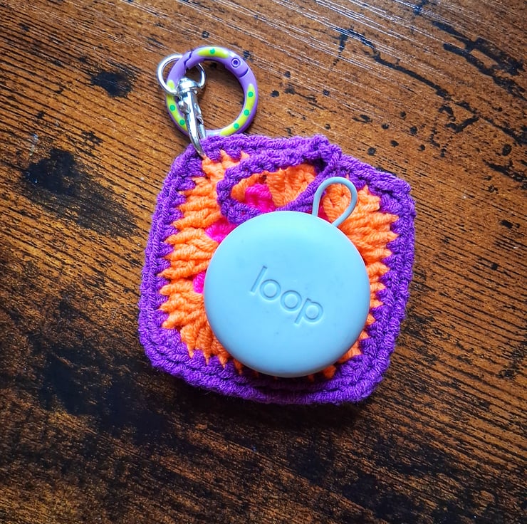 These bright keyrings double up as a little pouch to hold your Loops or earbuds. You will receive a random colour, but if you add a message I can make one to order in the colours of your choice.
