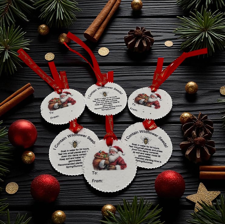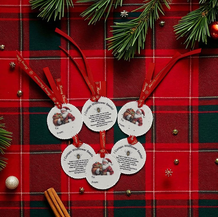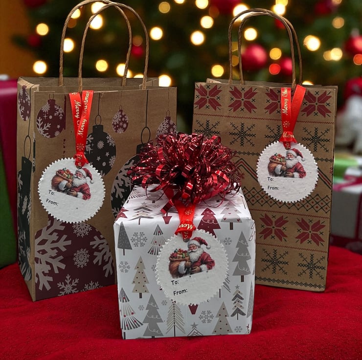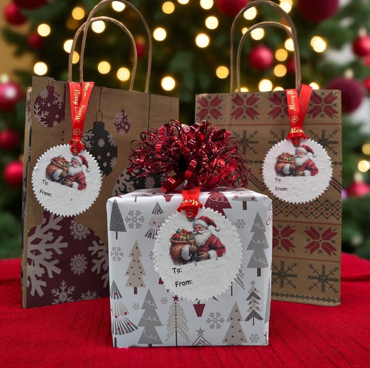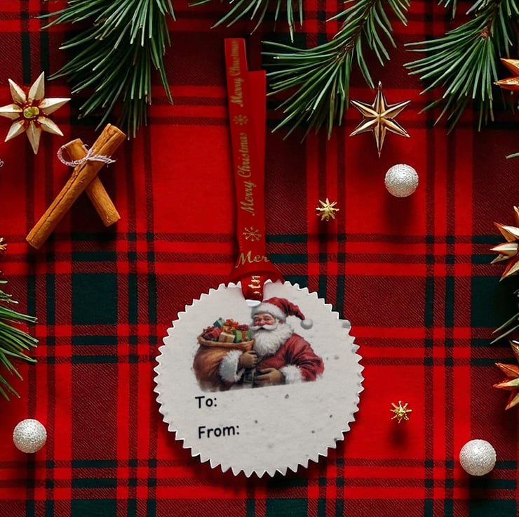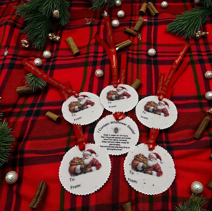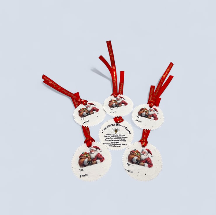 Set of Six Festive Santa Gift Tags on Plantable Wildflower Seeded Paper