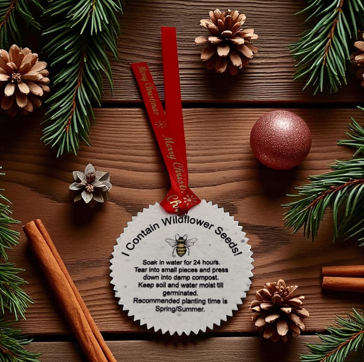 On the reverse side, you’ll find planting instructions alongside a sweet bee illustration. After Christmas, recipients can tear the tag into pieces, plant it, and grow beautiful wildflowers — a sustainable way to reduce waste and share a gift that keeps on giving.