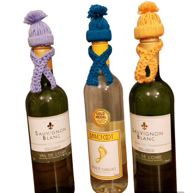 Have a little fun with your Christmas gift wrapping this year with this natty bobble hat and matching scarf. Fun, whimsical, frivolous, it’s bound to raise a smile from the recipient when they see it poking out the top of a bottle bag.