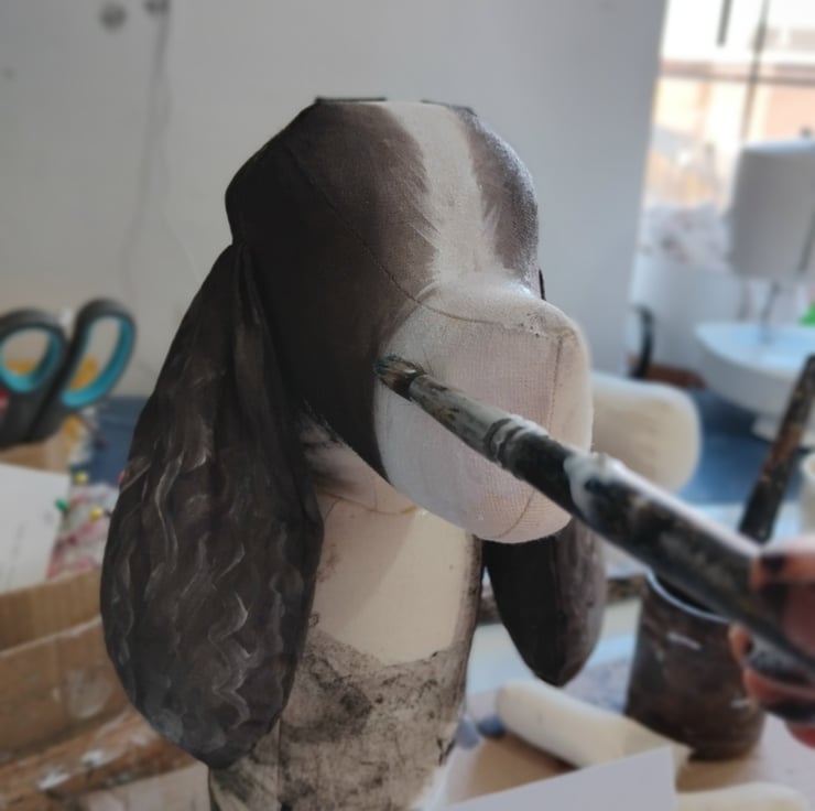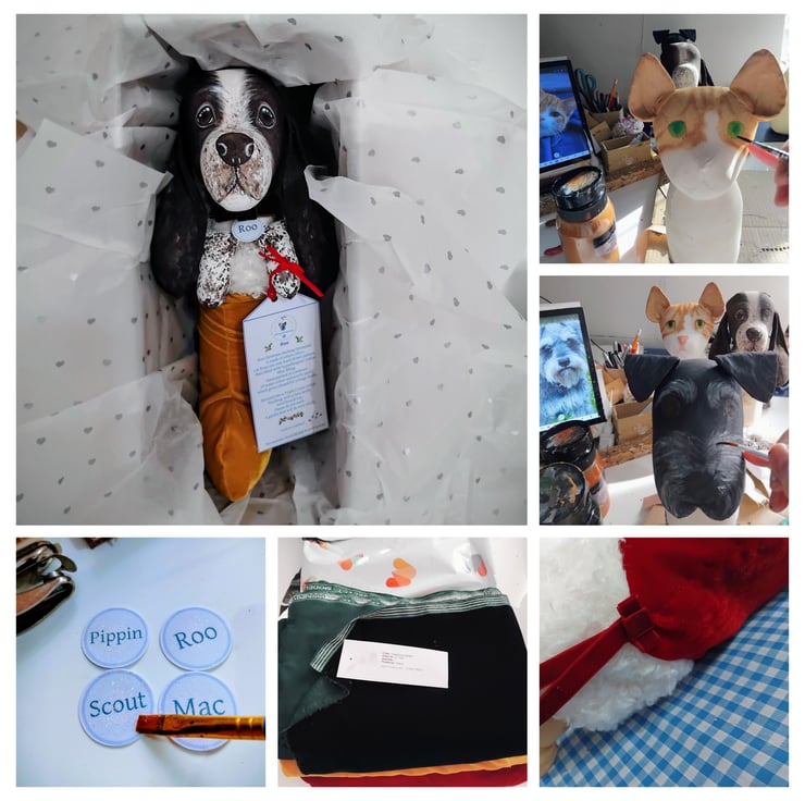 A mixture of water colour and acrylics are used to hand paint the head and paws, which gives a beautiful vintage look and enables me to capture their character and colouring, etc.