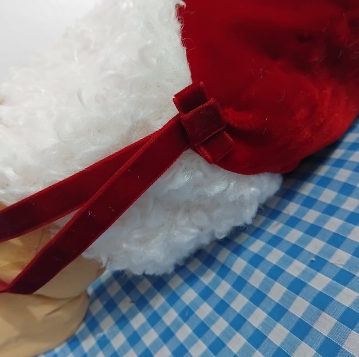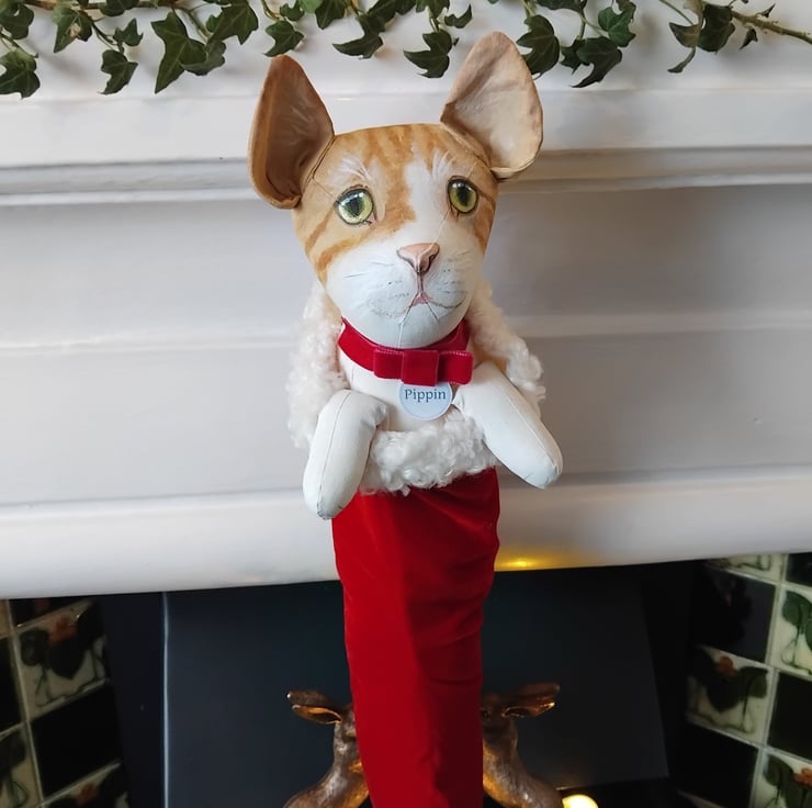 They are then secured in a handmade Minerva Triple Crown Velvet stocking, which is topped with faux lamps wool fabric and Berisfords velvet loop for hanging.