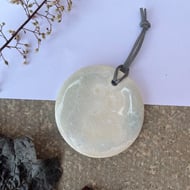 Porcelain Christmas Decoration from my Portal series of work. This piece uses an azure sea crackle glaze which will sparkle in your Christmas tree lights. Tie is made from faux suede cord. The disc is 7.5cm in diameter and around 4mm in thickness.