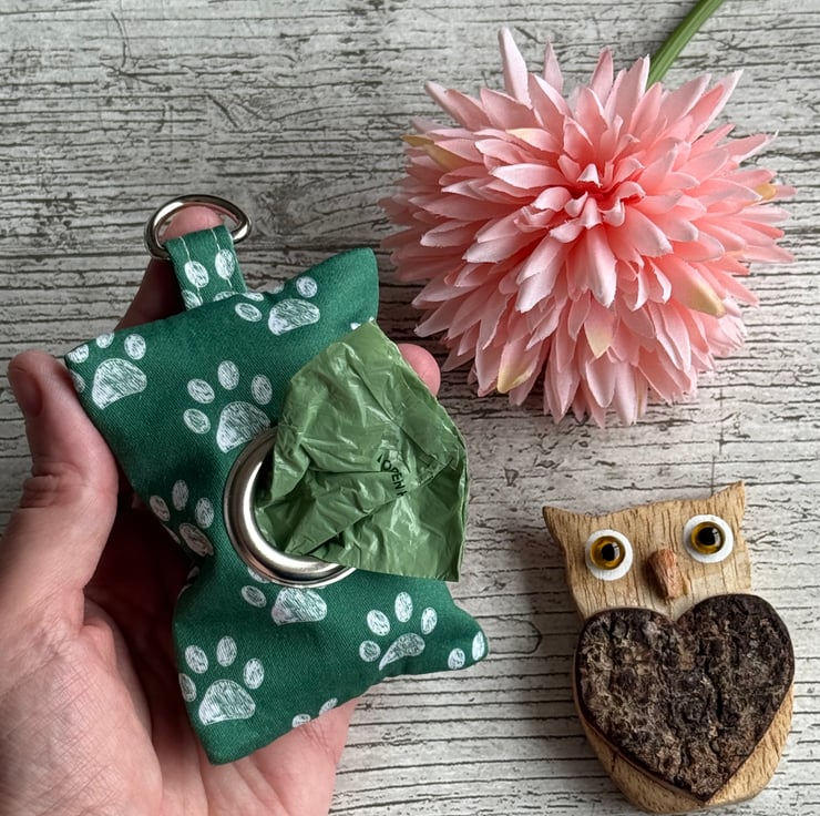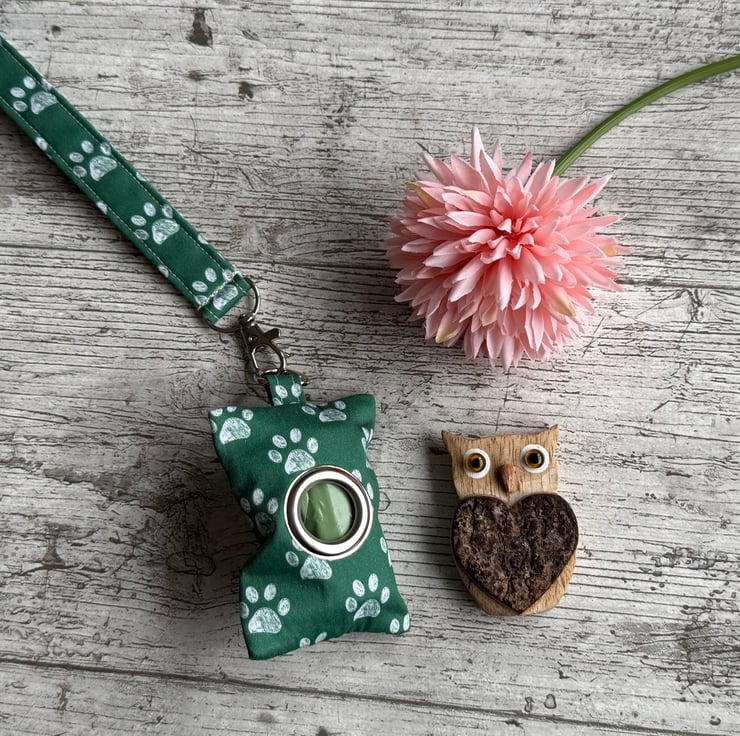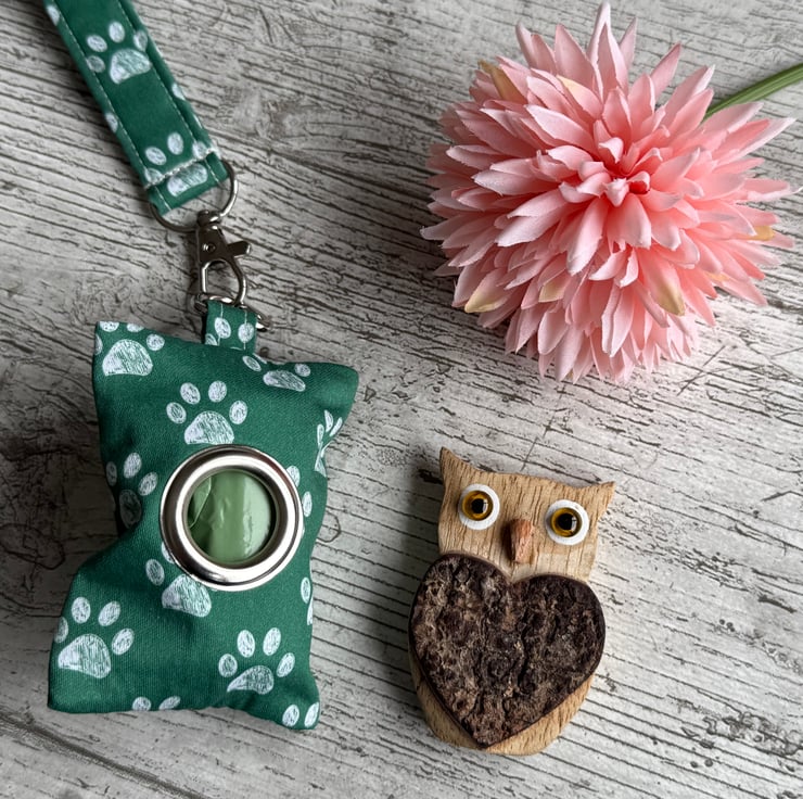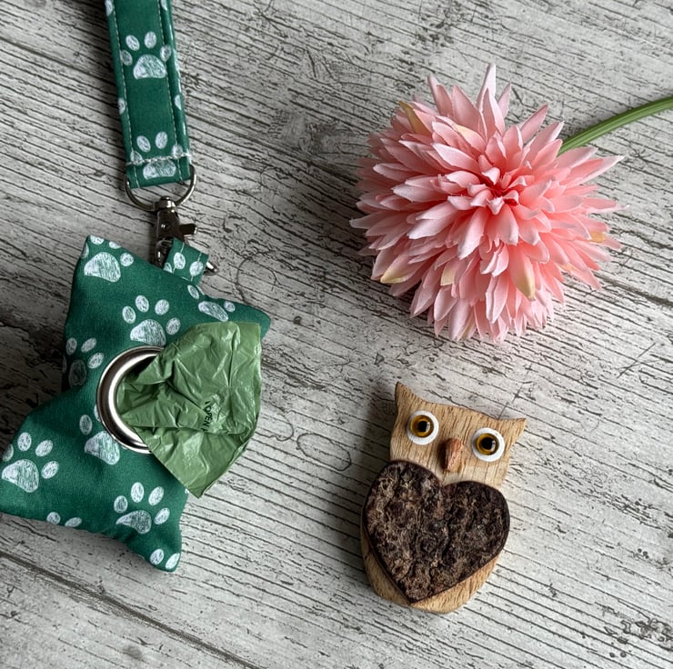 This dog poop bag holder can also be made with a lobster clasp instead of a d ring to allow it to be attached to a bag, clothing or a dog lead. Please message if this is required.