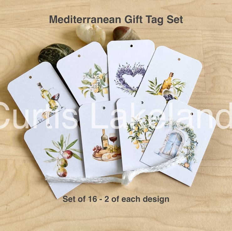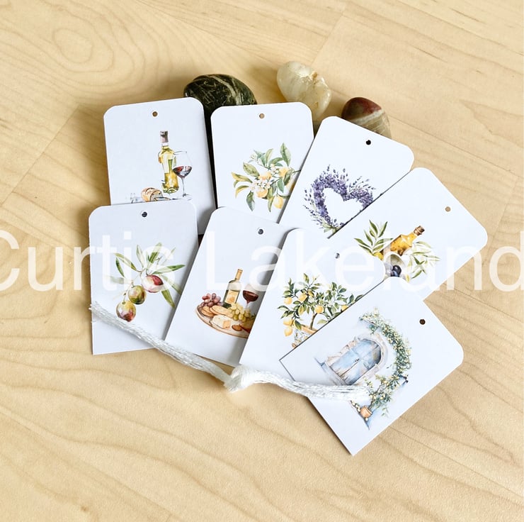 Mediterranean Gift Tag set of 16 various designs 5.2 x 7.4cm