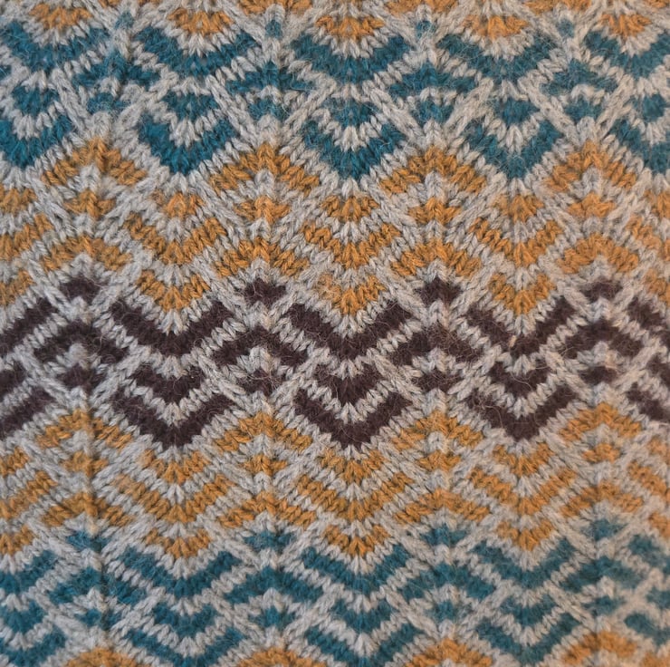 Yarn is Walcot Opus, 70% merino 30% alpaca. Very warm!