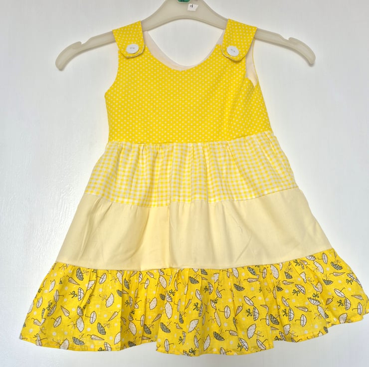 Yellow colours toddlers cotton tiered sundress - size 1 to 2 years