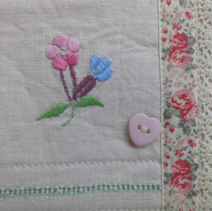 If I find a piece of vintage embroidered linen that is past it's best, I salvage what I can from it and incorporate it into new items to be enjoyed every day.