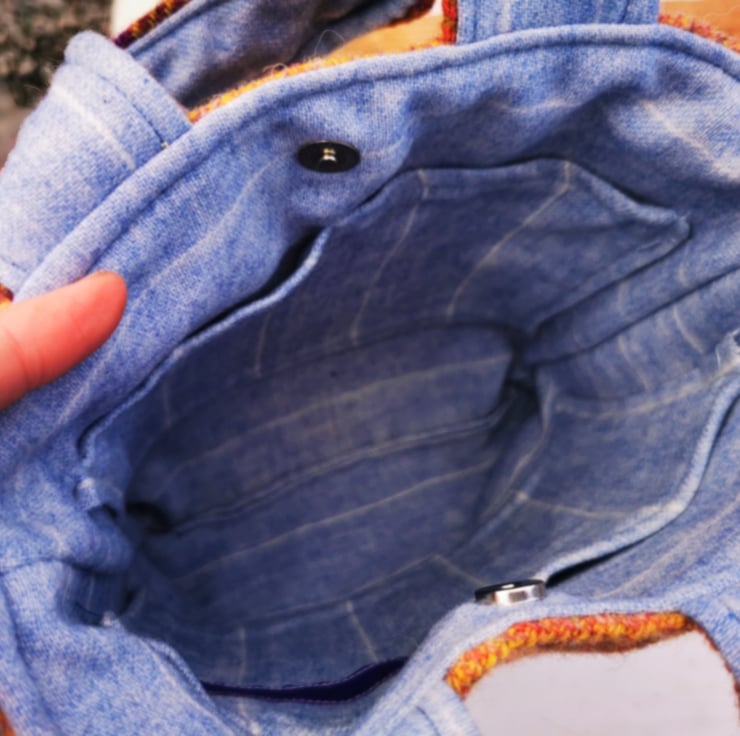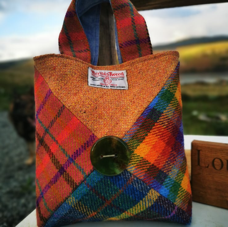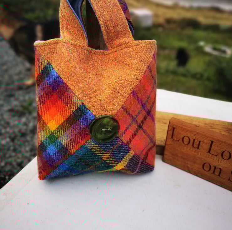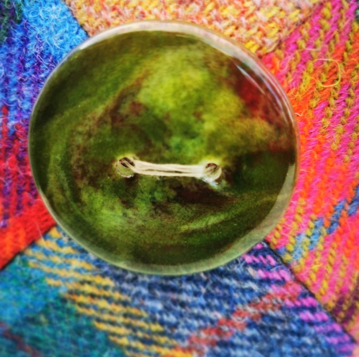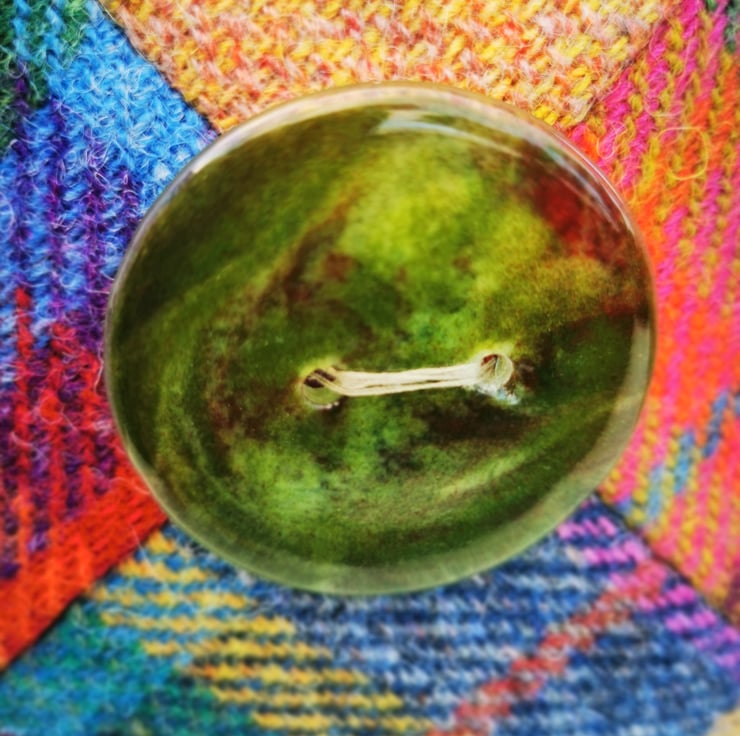 This is my criss cross patchwork. Design. Both buttons which are on both sides were handmade on skye from glass by Cuillin glass